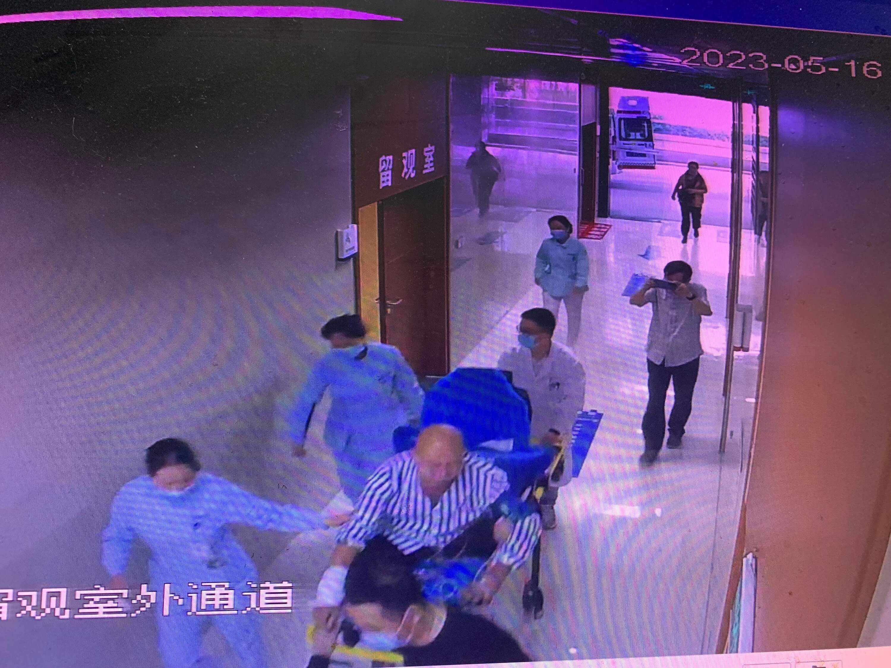 15时52分 救护车随诊医生打来电话:“患者已接到,正在回程路上。患者确实是急性心肌梗死,病情危重,目前血压测不到,心跳呼吸均不稳定,已按心梗救治流程作术前处理,请通知导管室准备行急诊血运重建手术。”