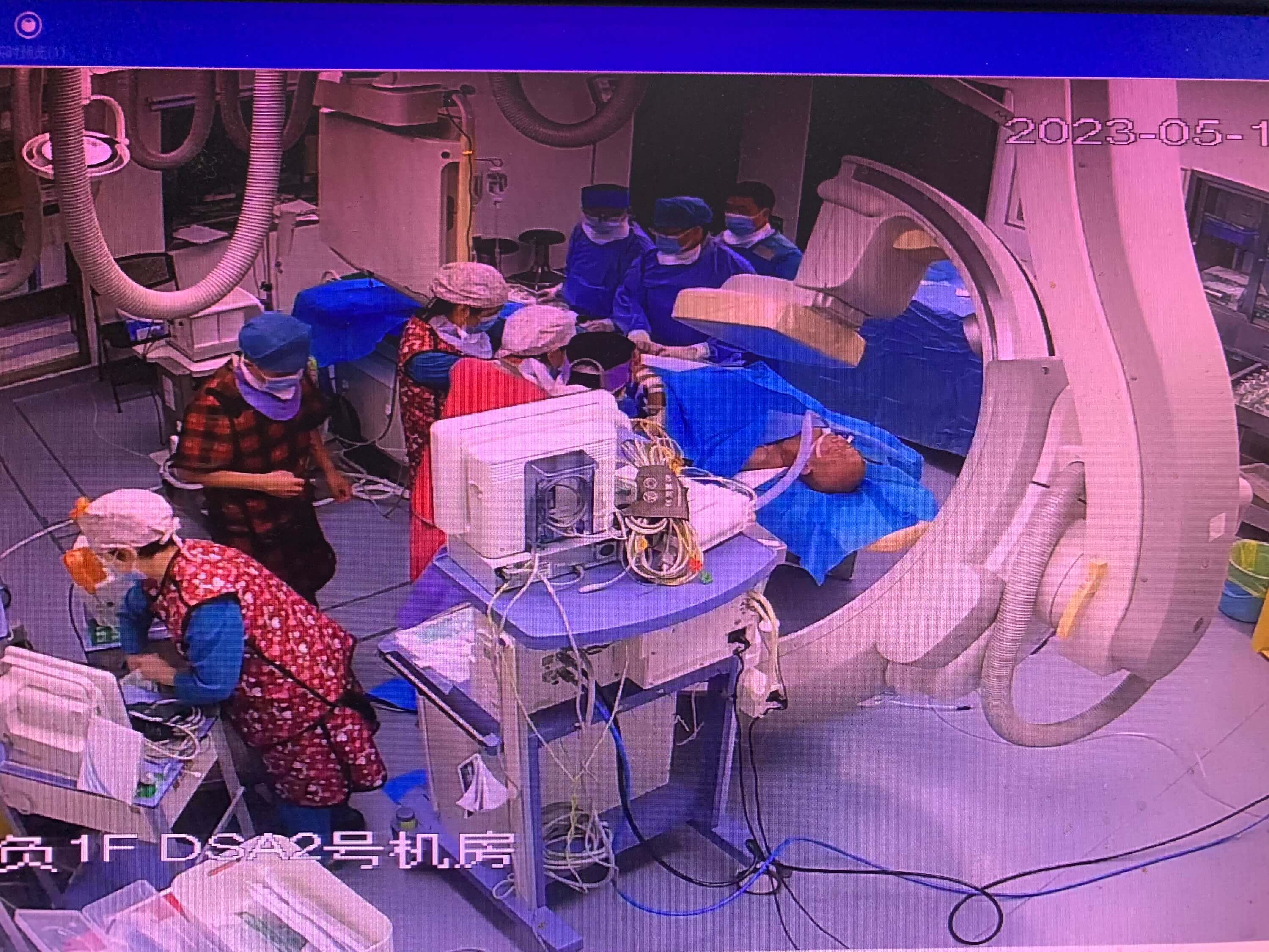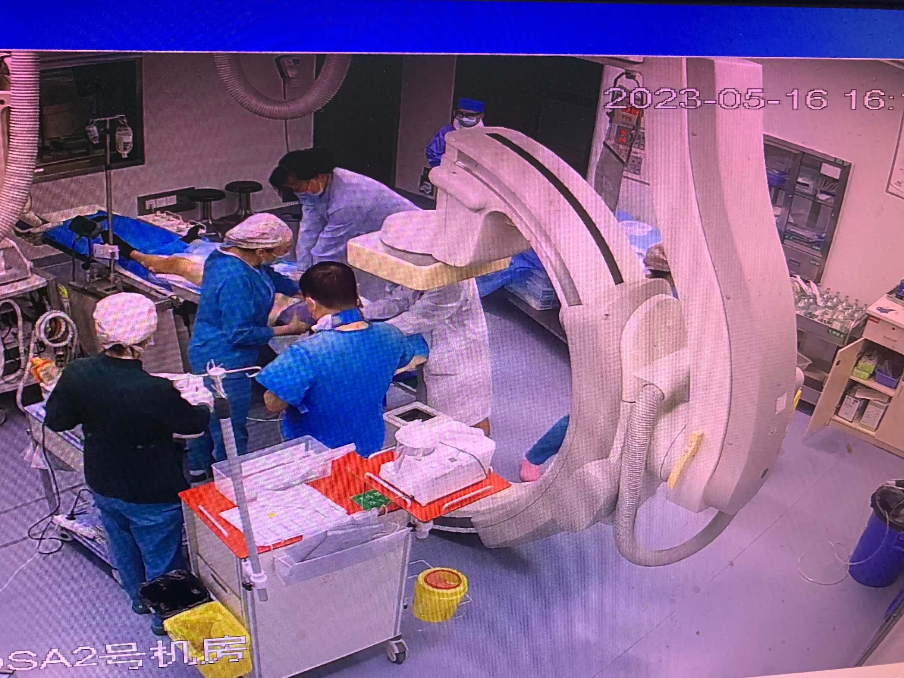 16时20分 “有一丝希望我们都不放弃!”经过短暂考虑后,刘建平主任和何云副主任带领心内科团队,跟患者家属进行充分沟通,讲清楚手术意图并征得家属理解同意后,危急时刻争分夺秒,凭借过硬的技术和沉稳的心理素质,展开了与死神的赛跑;